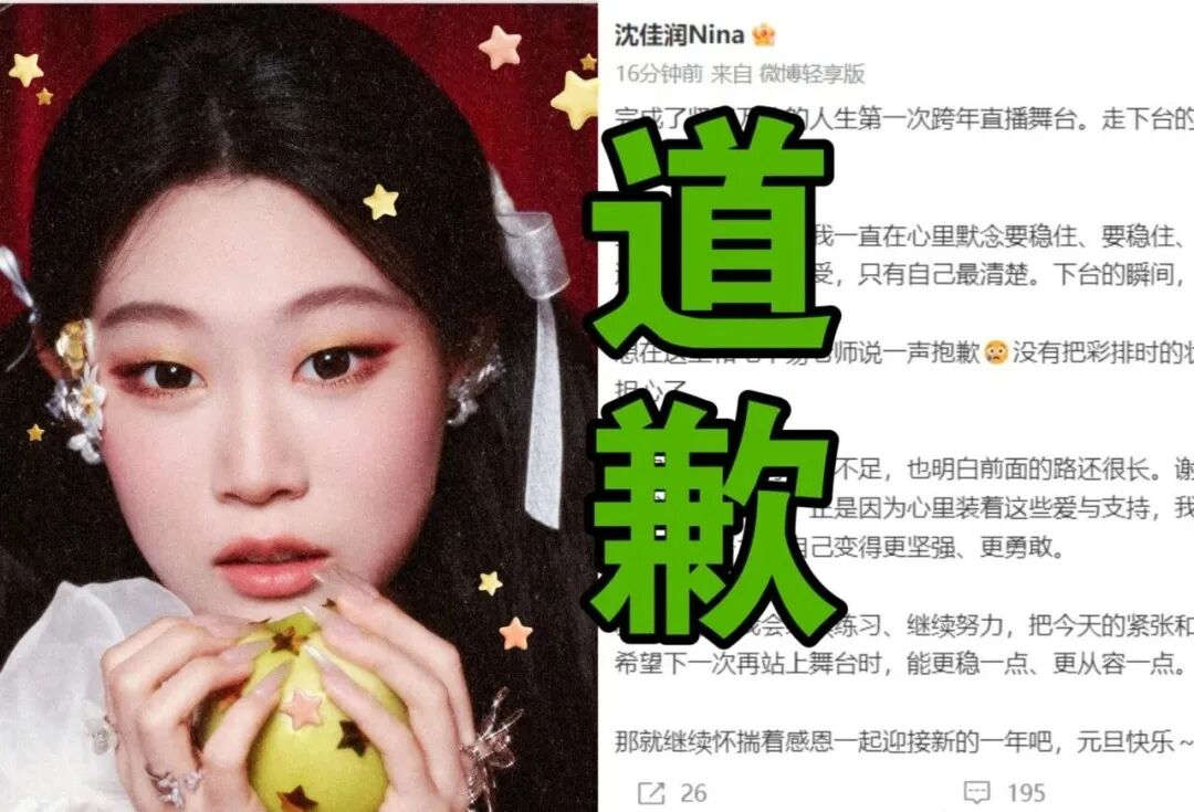 沈佳润发文道歉! 公众夜读 内地女星 2026-01-02 23:40:55 15 创作不易,用心坚持,欢迎请BaGua喝几杯爱心咖啡!打赏并支持本文 打赏并删除本文 江苏卫视跨年合唱《不染》时,沈佳润因紧张抢拍、跑调,发文向毛不易致歉!毛不易暖心回应:舞台本就是遗憾的艺术,未来可期。小沈阳在评论区是这样安慰女儿的:你小叔儿,我都没有合作上,你就偷着乐吧!01、(1)本来就是呀!是台下十年功,台上一分钟,可是也有出错的呀!这个很正常,更何况那么一个招人喜欢且年龄那么小的沈佳润了。成年人的世界,大人的世界,也是温暖的,不止幼儿园孩子,那次广东失误的篮球表演了。一个刚刚成年的沈佳润,刚一出道就是巅峰,有个托举她的小沈阳爸爸,还有托举她的沈春阳妈妈。不就是一个出错嘛!正常,人不出错,也不正常了,要不是假唱。(2)就因你这沈佳润的出错,合作人毛不易的理解,爸爸小沈阳的父爱如山的疼爱且对合作人的尊敬,还有粉丝们一边倒的为她加油!你是最棒的!人就应该这样,人本来就是温暖的动物嘛!沈佳润能顺利的出道,和有今天的成绩,更多的是离不开她父母的培养和托举。暖到了,这次真的又被暖到了,暖到了,冬天再冷的天气,也不冷了,怎么就这样的暖和呢!02、(1)小沈阳是赵本山的徒弟,小沈阳刚一走红的时候,也有这不好的声音,那不好的声音。可是当他一次次的开演唱会,还带着他老婆一起合唱,也让不看好他的人,闭嘴了。还有两口子托举姑娘的事情,不说别的,就是赵本山的其他徒弟们,能做到小沈阳这水平吗?真的没有。(2)看那孩子培养的,在台上一讲话,就招人喜欢,谦虚吧!还认真!还热情!还那么的优秀。人不就是这样嘛!自己全力以赴且顺其自然的把自己的人生过好了,再全力以赴且顺其自然的培养、托举下一代,自己的孩子了。03、(1)要是人都和小沈阳一家人一样的,是不是每一家人都会过得很好,同时也励志,也正能量满满呢!还有就是,更是一个家庭的典范,典范了做好父母是怎样做的了。做父母做的好,你的孩子才会好呀!父母做不好,孩子怎么好呢!言传身教,不如身教言传,你父母什么样,孩子就什么样!(2)当然了,也有个例的孩子,父母做不好的,孩子很优秀,这个是个例。还有,当然了,做父母都是第一次做,不是所有的父母都和小沈阳夫妻一样优秀,那就全力以赴且顺其自然了。到最后了,要说的是,沈佳润你是最棒滴的,大家都喜欢你,希望你以后给大家带来更多更好的作品,么么哒!大家都爱你!好了,今天就这样吧!祝福小沈阳一家永远的身体健康,幸福、快乐,祝福大家都好。谢谢大家!共勉!欢迎留言讨论精彩推荐:《与辉同行》跨年乐享会,是一场文化人的盛会! 创作不易,用心坚持,欢迎请BaGua喝几杯爱心咖啡!打赏并支持本文 打赏并删除本文 感谢您的支持鼓励,我会继续努力的!文章地址:用户邮箱:打赏金额:USDT 请输入数字点击”去打赏“,即可进行打赏支持本文章哦 沈佳润 发表评论