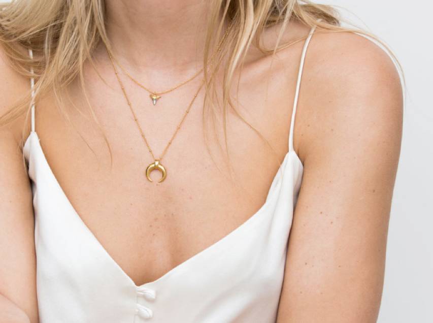 精美的项链饰有小巧角形饰物。