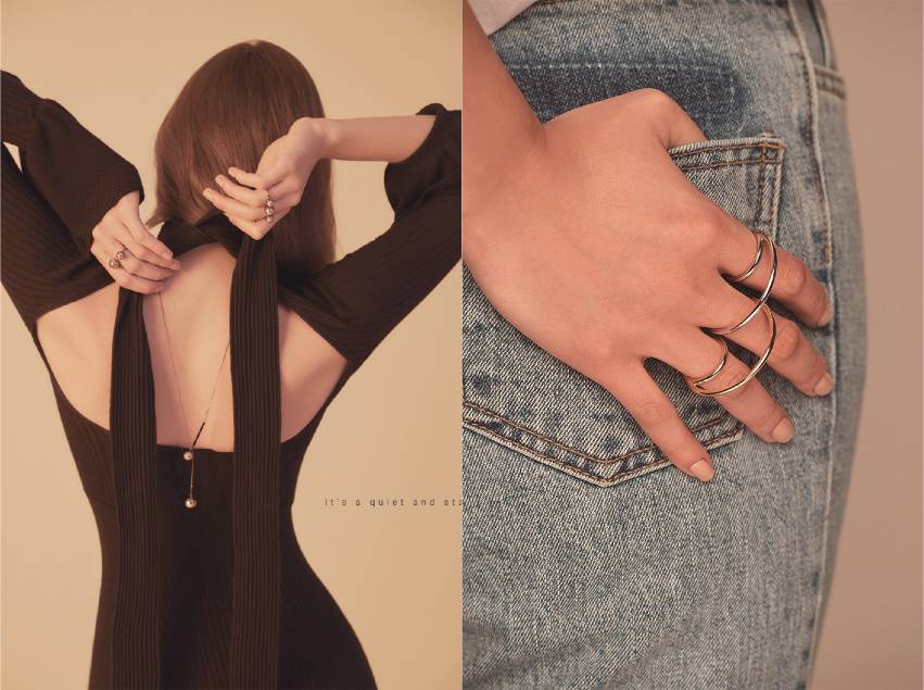 让这些简约的戒指、项链拥有了不一样的感觉。