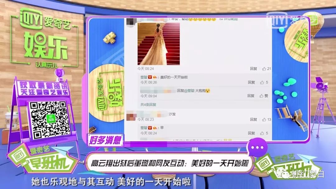 董璇在微博中跟网友互动:美好的一天开始啦。