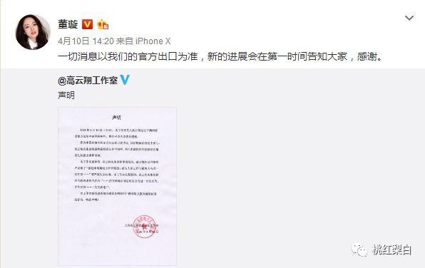高云翔工作室发出声明,董璇第一时间转发:我相信他。