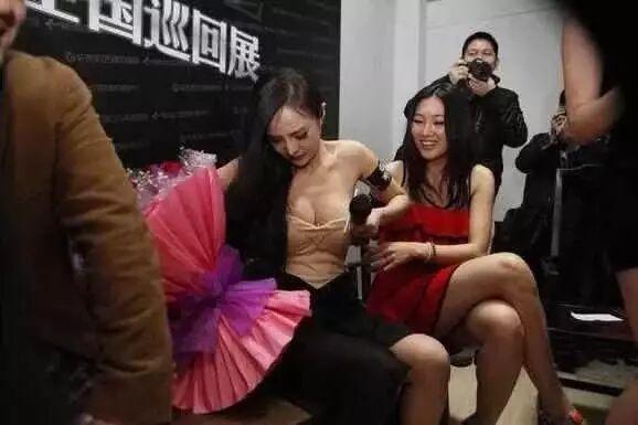 图片中是在一个XXX巡回展上的,现场粉丝由于过于激动,竟然直接把杨幂的裙子都扯掉了!