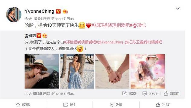 你以为只有程晓玥在秀恩爱么?郑恺也在微博里大肆地秀!恩!爱!