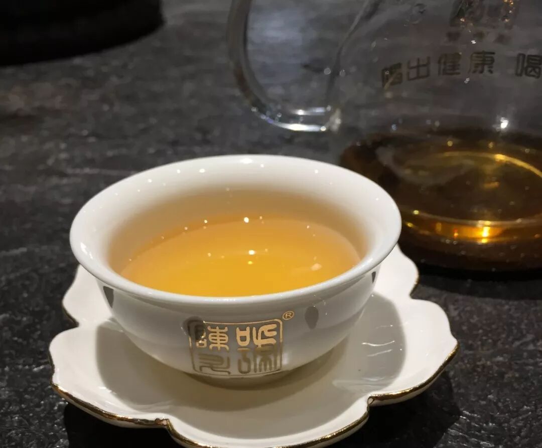 老班章普洱茶汤色橙黄,叶底持嫩度较高,其茶汤汤感饱满醇厚,霸气十足,苦头入口即散。