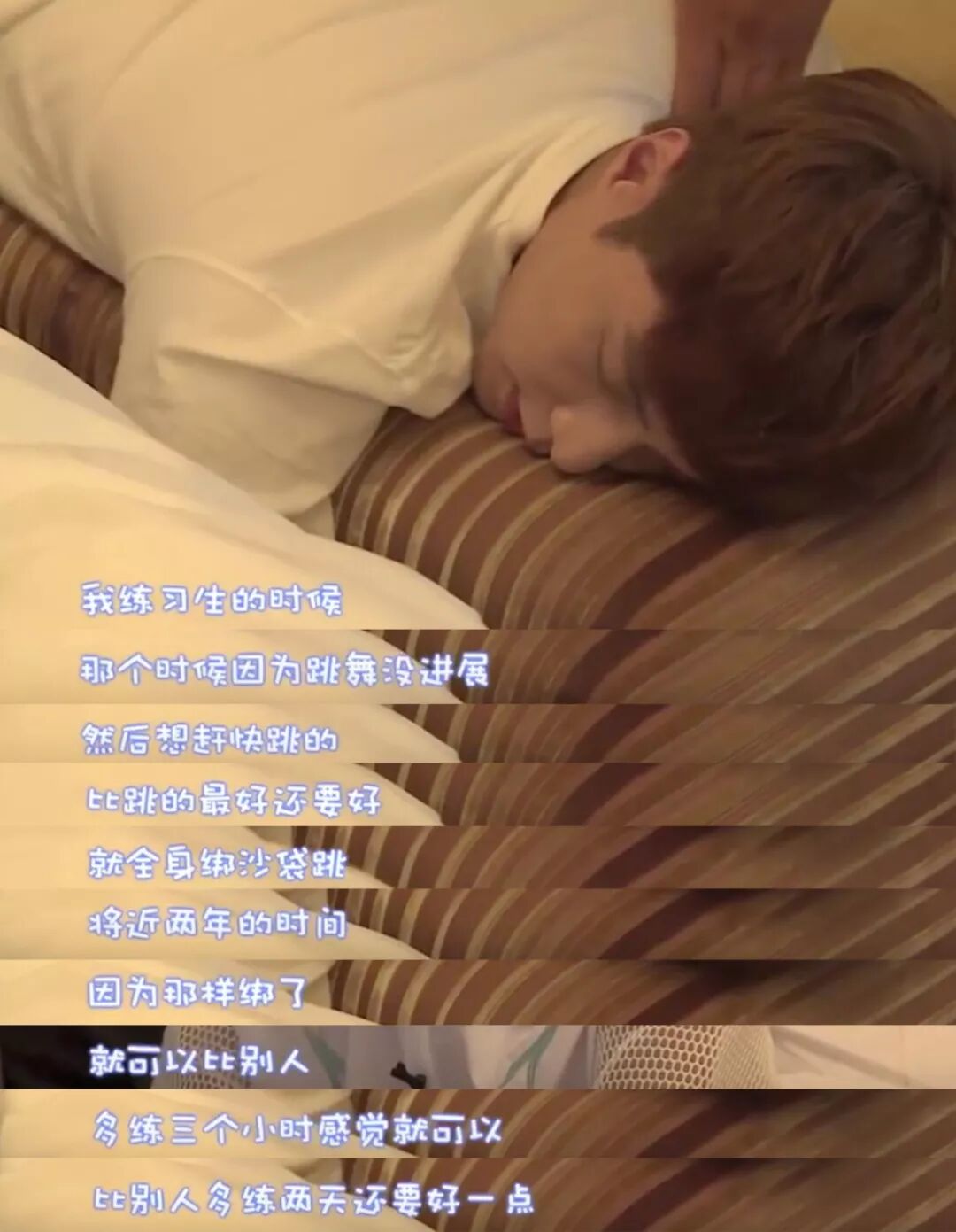 出道前的一个月,持续大强度的练习导致他的腰伤爆发,整个人躺在床上起都起不来。