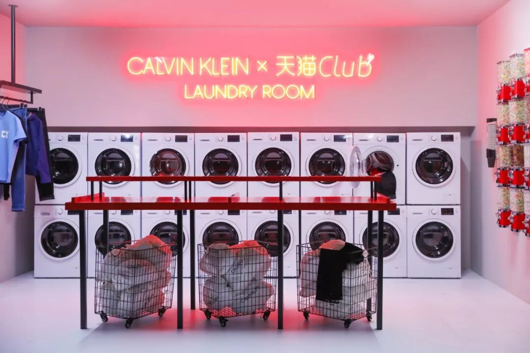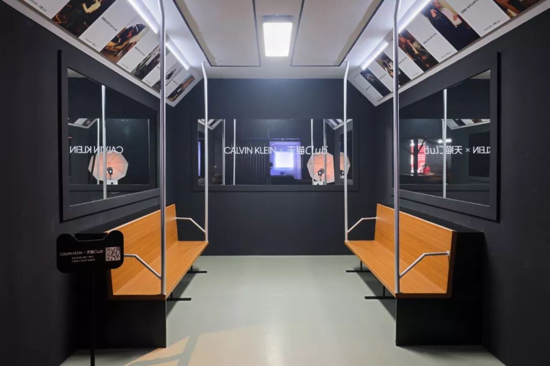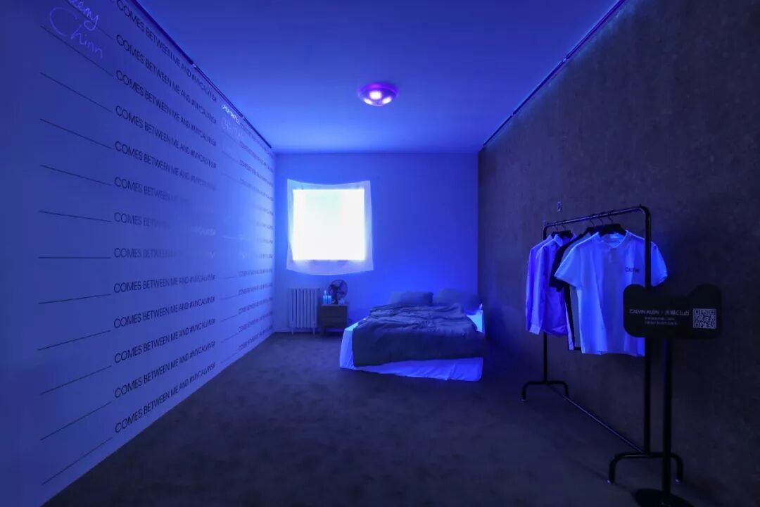 场景布置本身也有考究——高度还原了即将在 9 月问世的 CALVIN KLEIN JEANS “GET BETWEEN ME AND #MYCALVINS# ”全球广告大片。