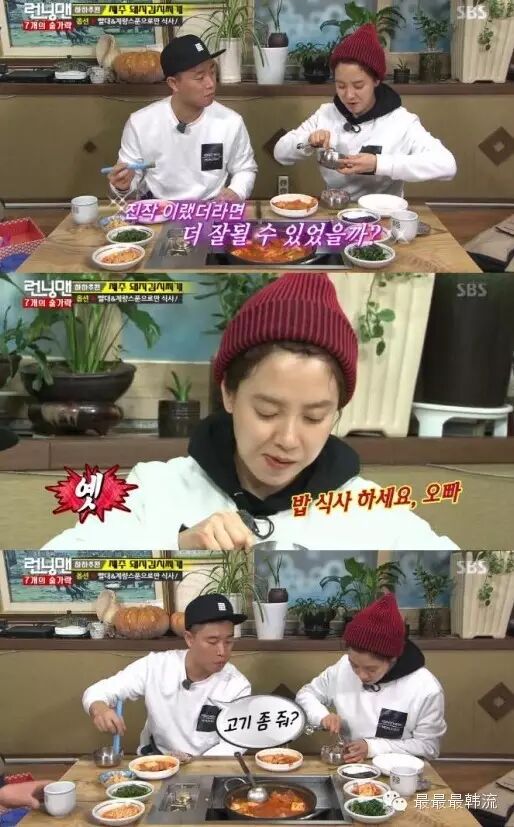 再往后就是《Running Man》咯,几乎全素颜出镜的宋智孝,在节目里永远都是一个大写加粗的女汉子。