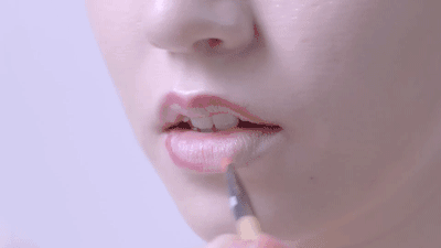 然后用唇刷重新勾勒唇线,勾勒的嘴角要比之前高一些,改变之前向下的走势。