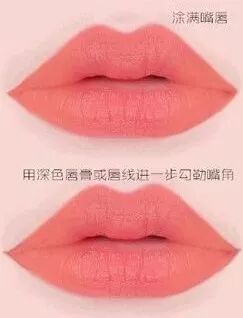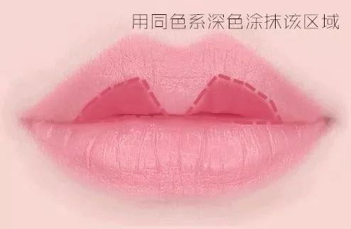 然后用深一点的唇膏,涂抹在这两个区域,打造M字唇的效果。