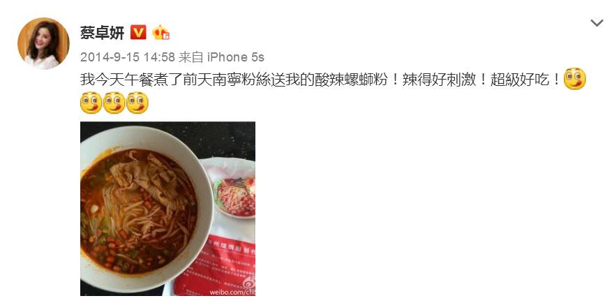 之前阿Sa收到了南宁粉丝送的螺蛳粉