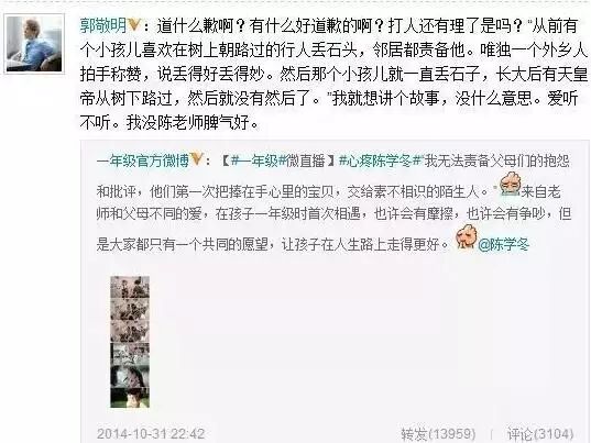 结果小四为陈学冬受到的委屈鸣不平,实力维护陈老师,声称不需要道歉!