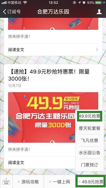 只要你关注了合肥万达乐园官微