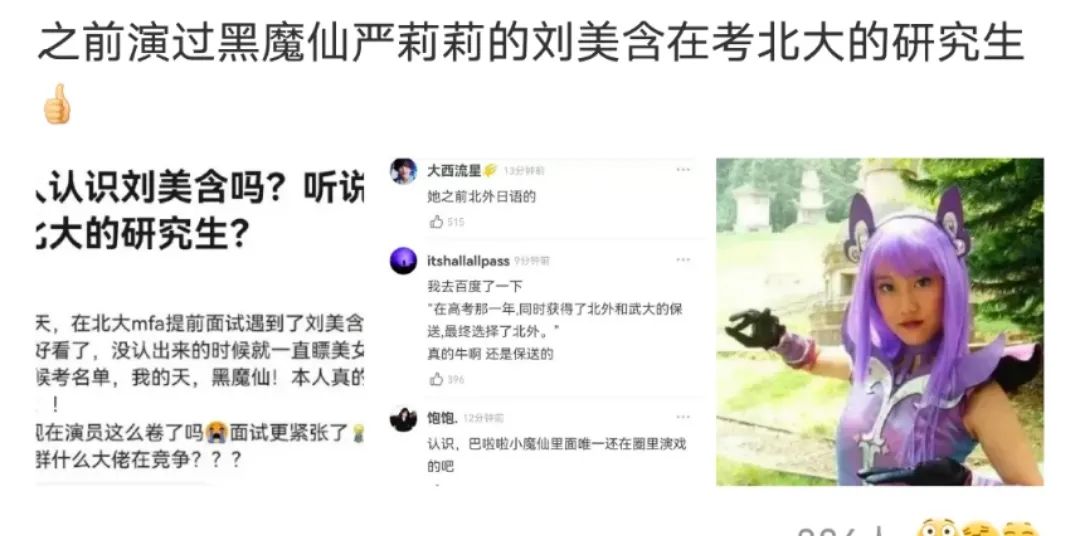 刘美含早就学霸石锤了,本科的时候就获得了北外和武大的保送资格,现在又在备战北大的研究生,要是过了也算是高学历的那一批次了,鱼乐圈里头有学历和没学历的是两个群体,基本不一起玩哈,所以多读书是有用的,别听部分人瞎说。这里大家又在讨论起了自家爱豆的学历,还说姚安娜也是哈佛本科呢,但是人家现在从事的行业和本专业一点关系也没有,参加的几个项目都是有点门道在里头的,不得不说先天条件好是真的有用。