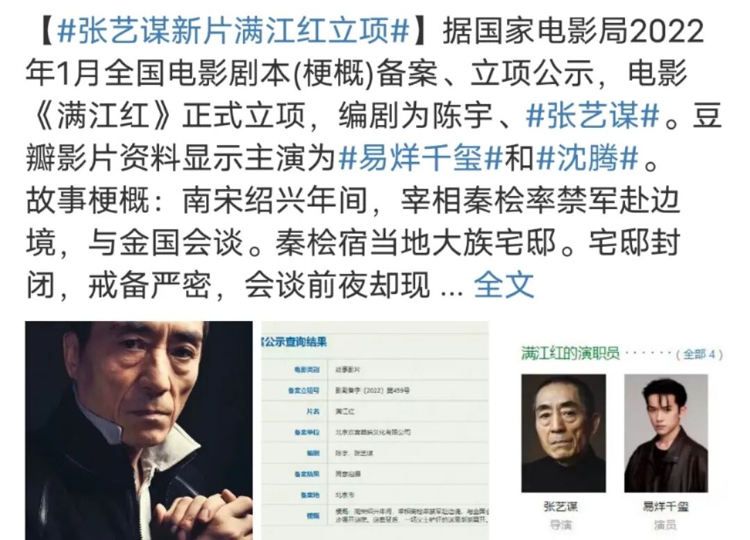 老谋子这几年又到了他的创作高峰期,除了某些用错了演员的片子,他其他作品的质量普遍在线,也不能用某l姓演员来黑他的才华,至少春节档的狙击手还是不错的哈。他这次的满江红,肯定用的还是以老戏骨为主,据说刘某让老谋子给个女二的位置,如果l某不幸出演了,只希望戏份少一点。