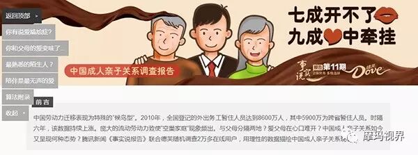在12月29号当天举行的影片首映发布会上,德芙联合腾讯《事实说》首次发布了2016中国成人亲自关系调查报告大数据,对眼下中国劳动力迁移导致的“空巢家庭”现象,以及年轻人与父母亲密关系渐渐疏远的现象予以了关注,用数据描绘了中国成人亲子关系的现状,呼吁人们多理解父母,尤其是在春节即将到来之际,多多陪伴父母,勇于表达对父母的爱。