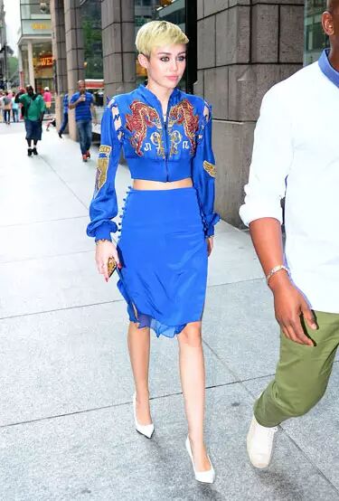 现在的Miley Cyrus作风大胆,俨然一副摇滚叛逆女孩的代表。