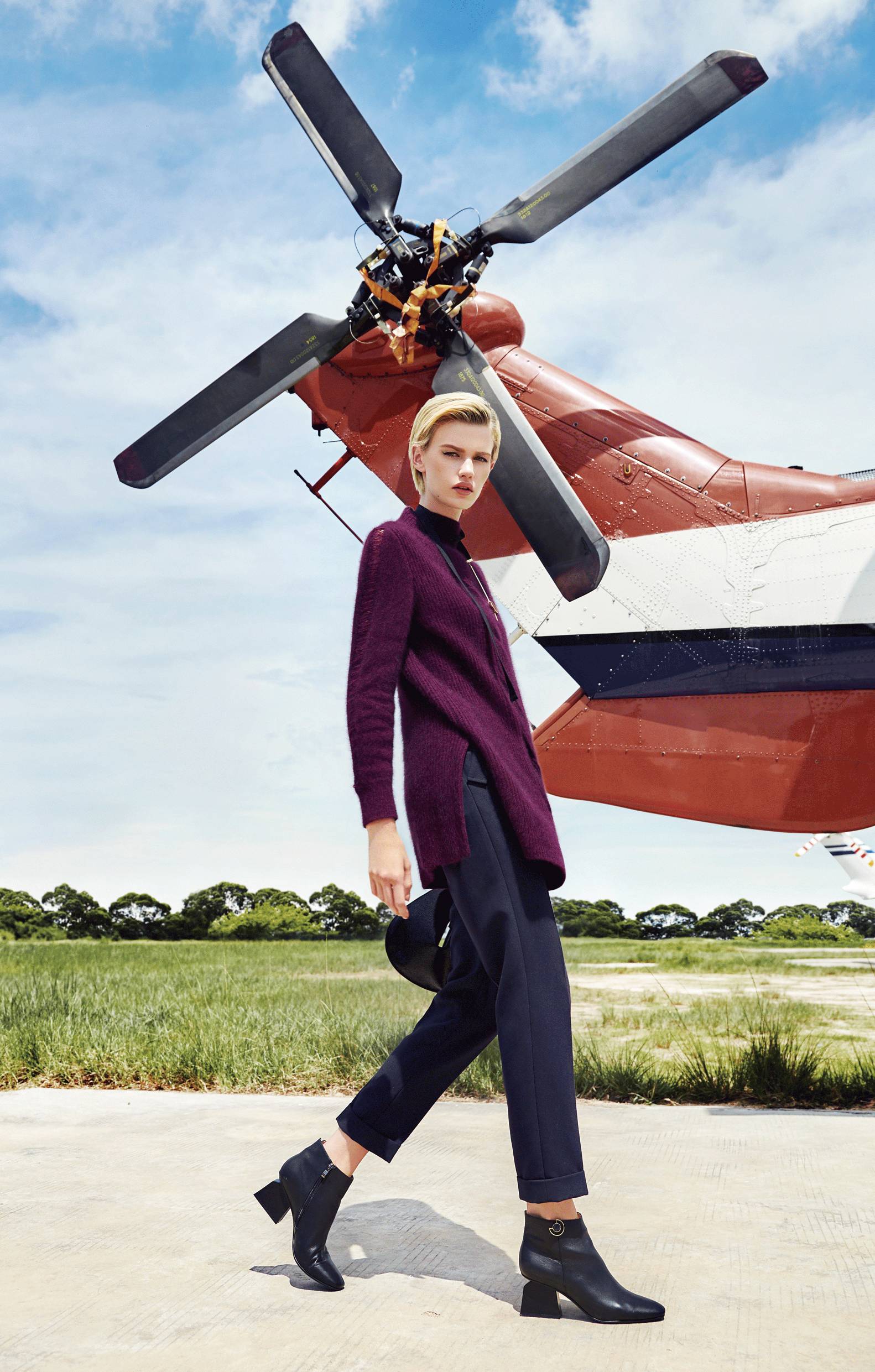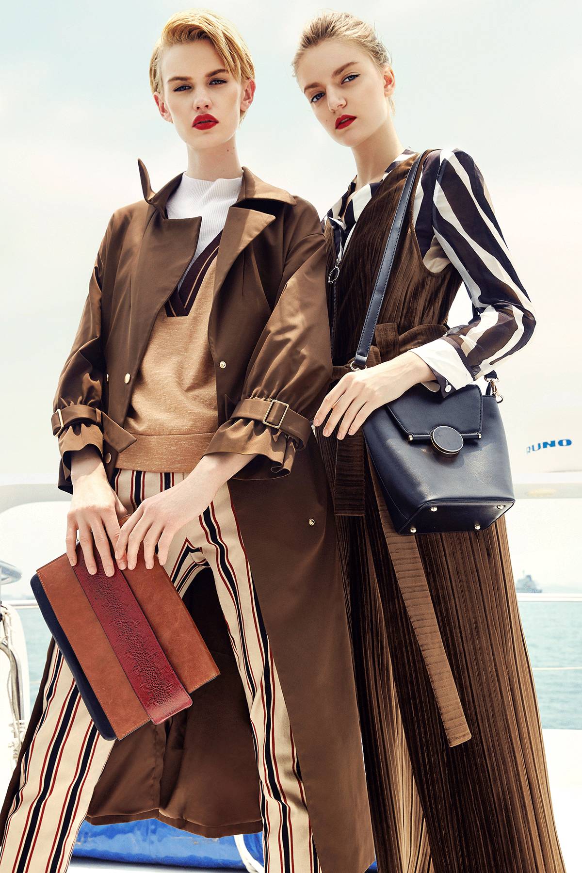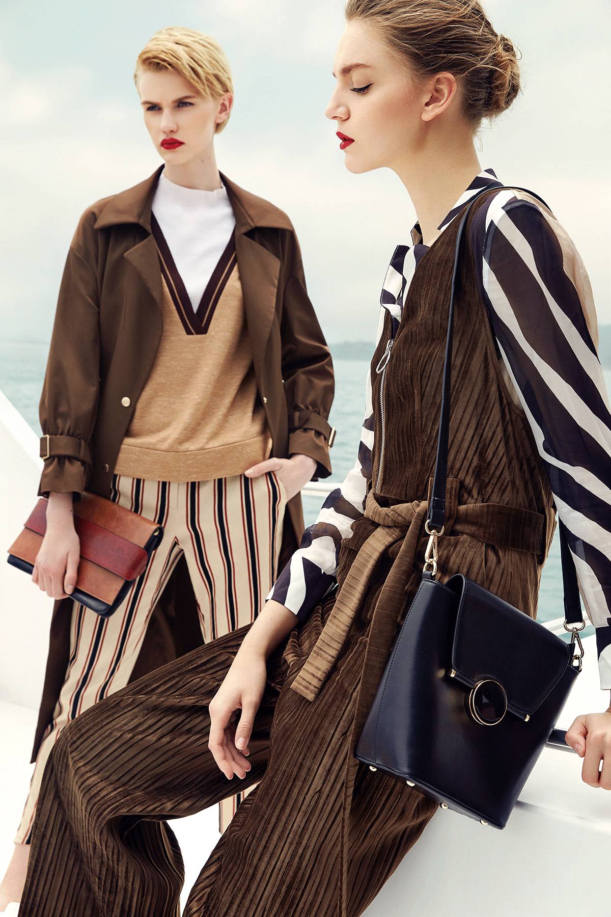 左:大衣 AGG18300 毛衫 AGH23570 条纹裤 AGH54300