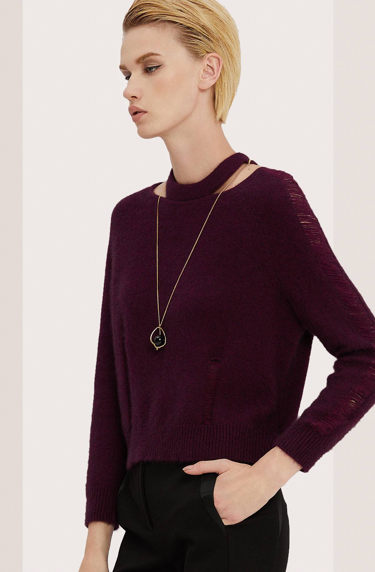 进入室内,脱下外套,拼的就是出色内搭!富有艺术性和吸睛的拼色,让毛衣单穿就能给你精致和迷人的外观。