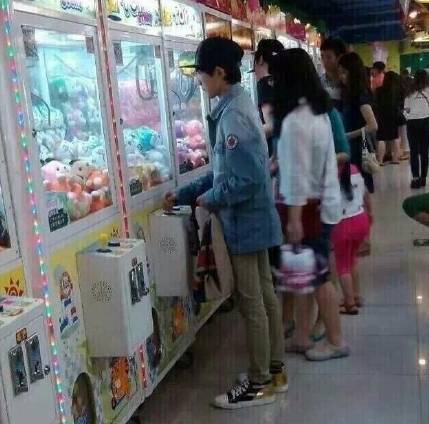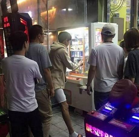 灿烈欧巴穿着拖鞋在街头抓娃娃