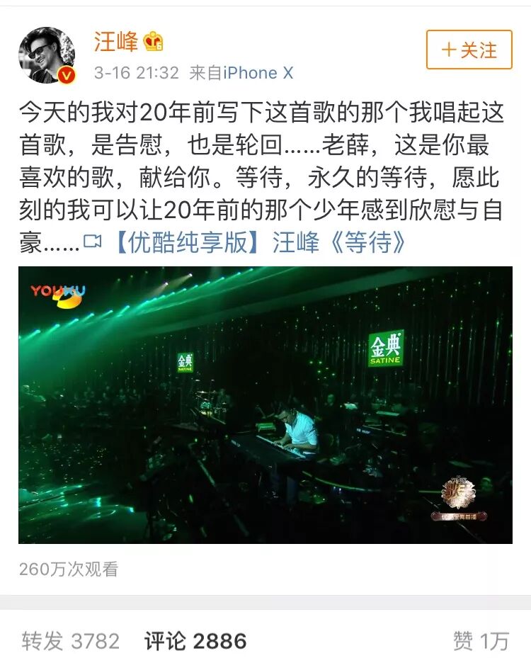 他说这是他对20年的自己唱的歌。是告慰、也是轮回。