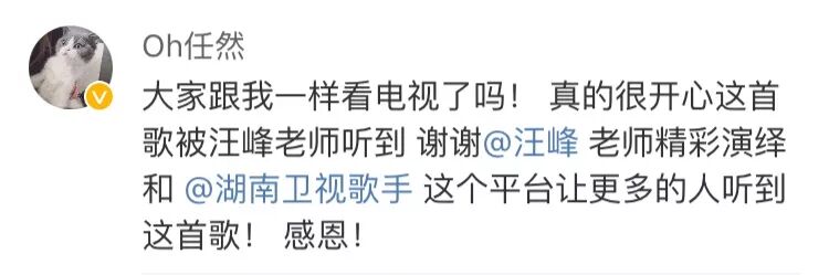 原唱任然也感谢了汪峰能偶演唱这首歌,让更多的人听到。