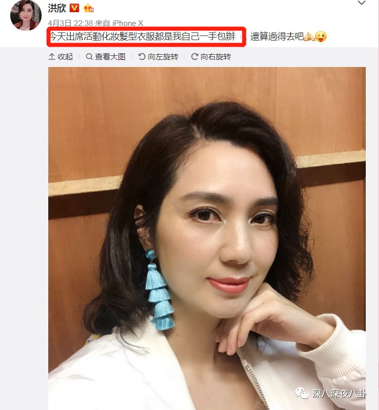 而且去年那次洪欣很主动出来灭火,又发微博又配合出镜澄清绯闻,