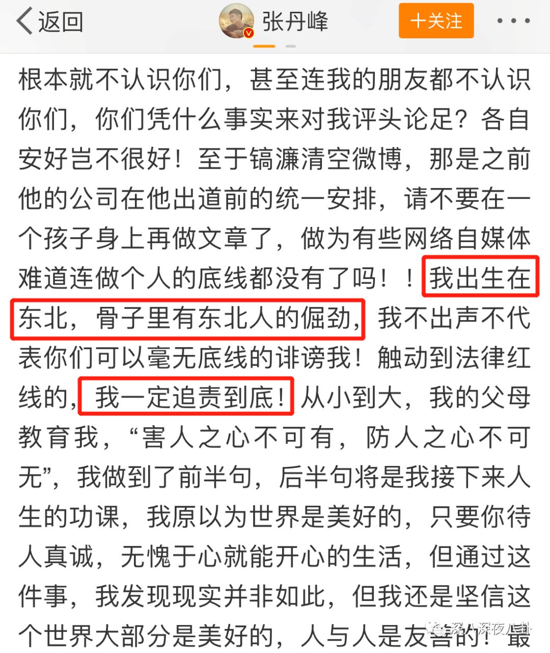 4.我是个倔强的东北人,我什么都没干,都是你们无知暴民网络暴力我!这事儿肯定是有人背后搞我!有水军黑我!!我委屈!!!