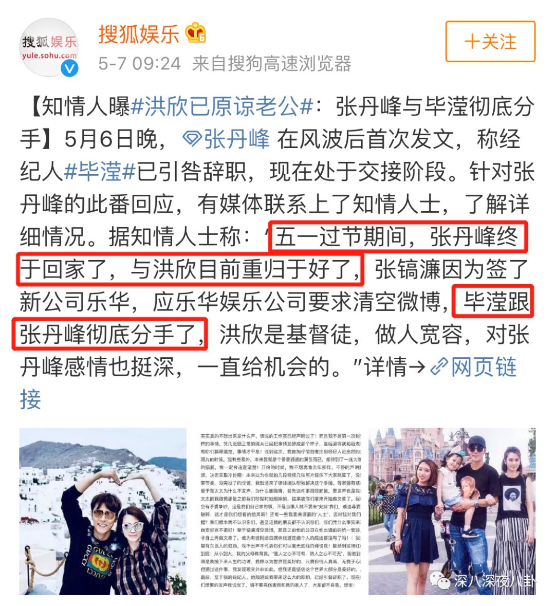 从去年7月洪欣一张全家出游图暴露张丹峰与女经纪人暧昧关系以来,已经快一年了,