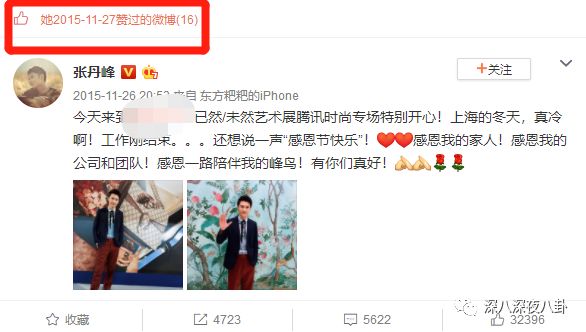 据她之前没删的微博,她2015年11月开始点赞张丹峰的微博,差不多这时间步入职场,