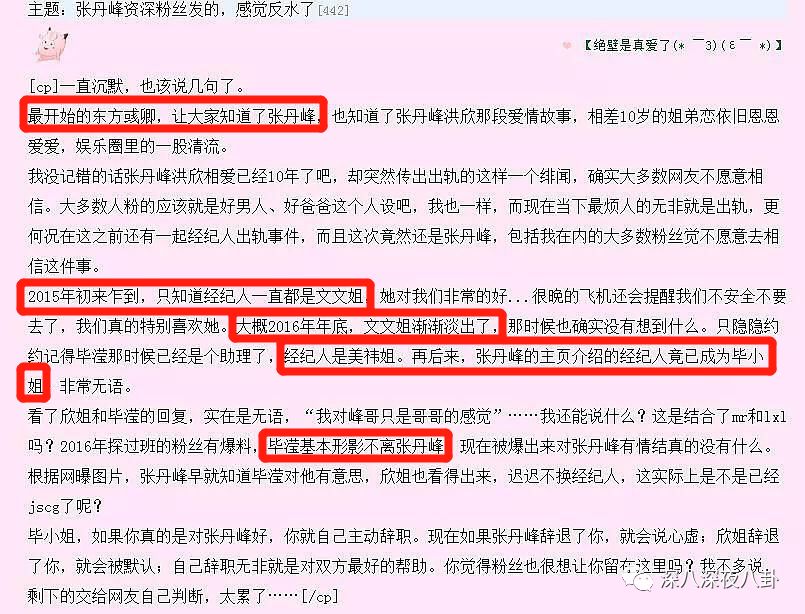 第一,去年大规模绯闻事件时,大家就说毕滢深夜出现在张丹峰房间这种行为比较不妥,