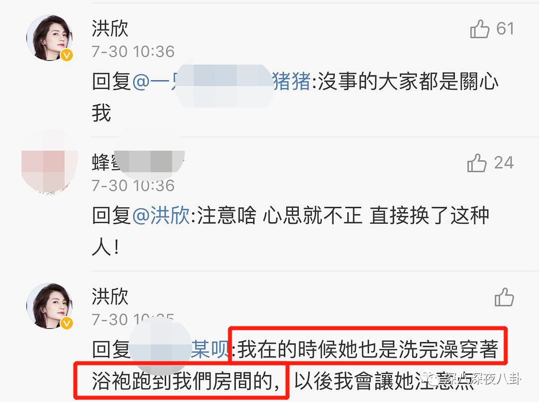 洪欣也说毕滢洗完澡穿着浴袍去他们房间,以后会让毕滢注意一点,
