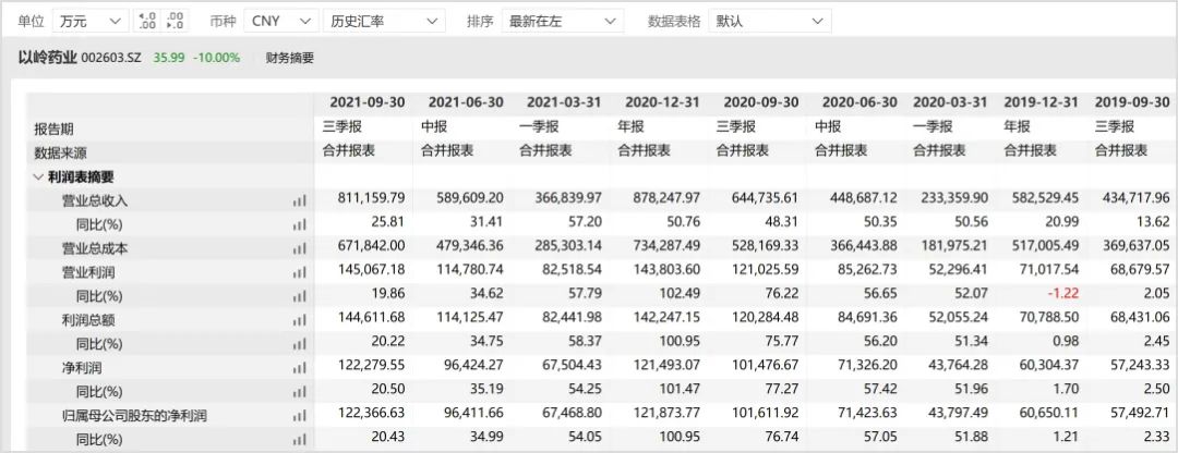 2020年,以岭药业营收达到87.8亿元,同比增长50.76%,净利润12.1亿元,较上年翻了一倍。