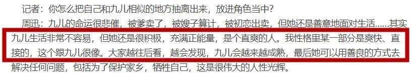 对于生活中,那些无法抑制的悲观情绪,周迅也开始采取一些主动措施,比如有意识地拒绝一些悲剧,去演一些更有能量,或让自己更舒服的戏。