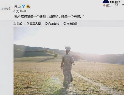 当观众都在为如懿的命运扼腕叹惜时,周迅却发了一条微博:“我不觉得她是一个悲剧,她很好,她是一个善终。”