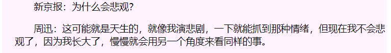 周迅说得上是一个“积极的悲观主义者”,因为她虽然悲观,却不会逃避。