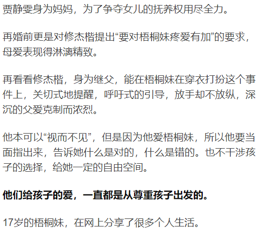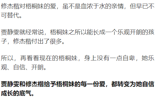 从她对修杰楷的认可中也不难看出,梧桐妹虽然叛逆,却不否认来自继父的爱。