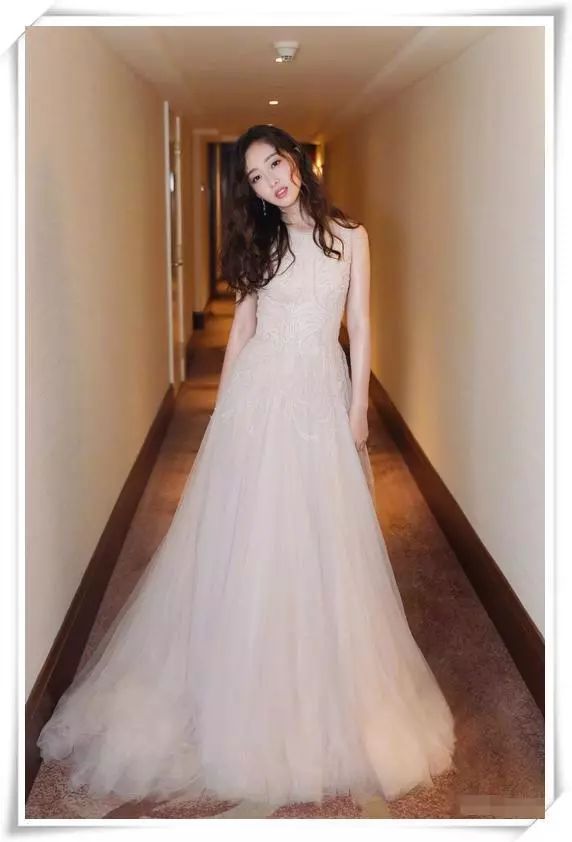 一袭浅色系的礼服显得蒋梦婕仙气十足,妥妥的小仙女一枚,无袖设计使蒋梦婕露出修长的手臂,裙摆使薄纱设计,仿佛仙女下凡般,及地的裙摆显得好贵典雅。