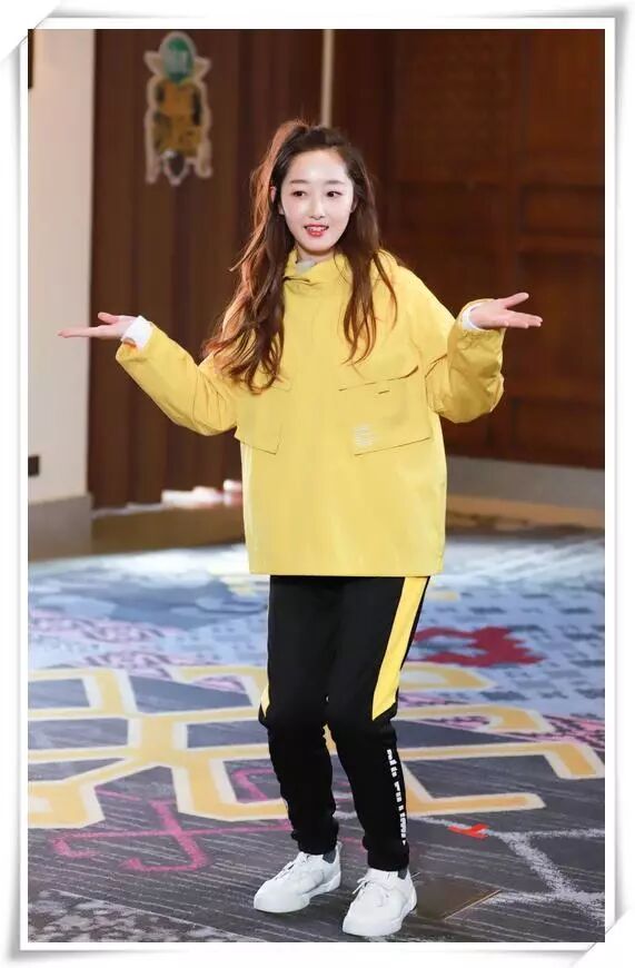 身穿运动装的蒋梦婕活力四射,亮色系的衣服给人带来一种青春活力,鬼灵精怪的感觉,头扎一个可爱的苹果头可爱极了。