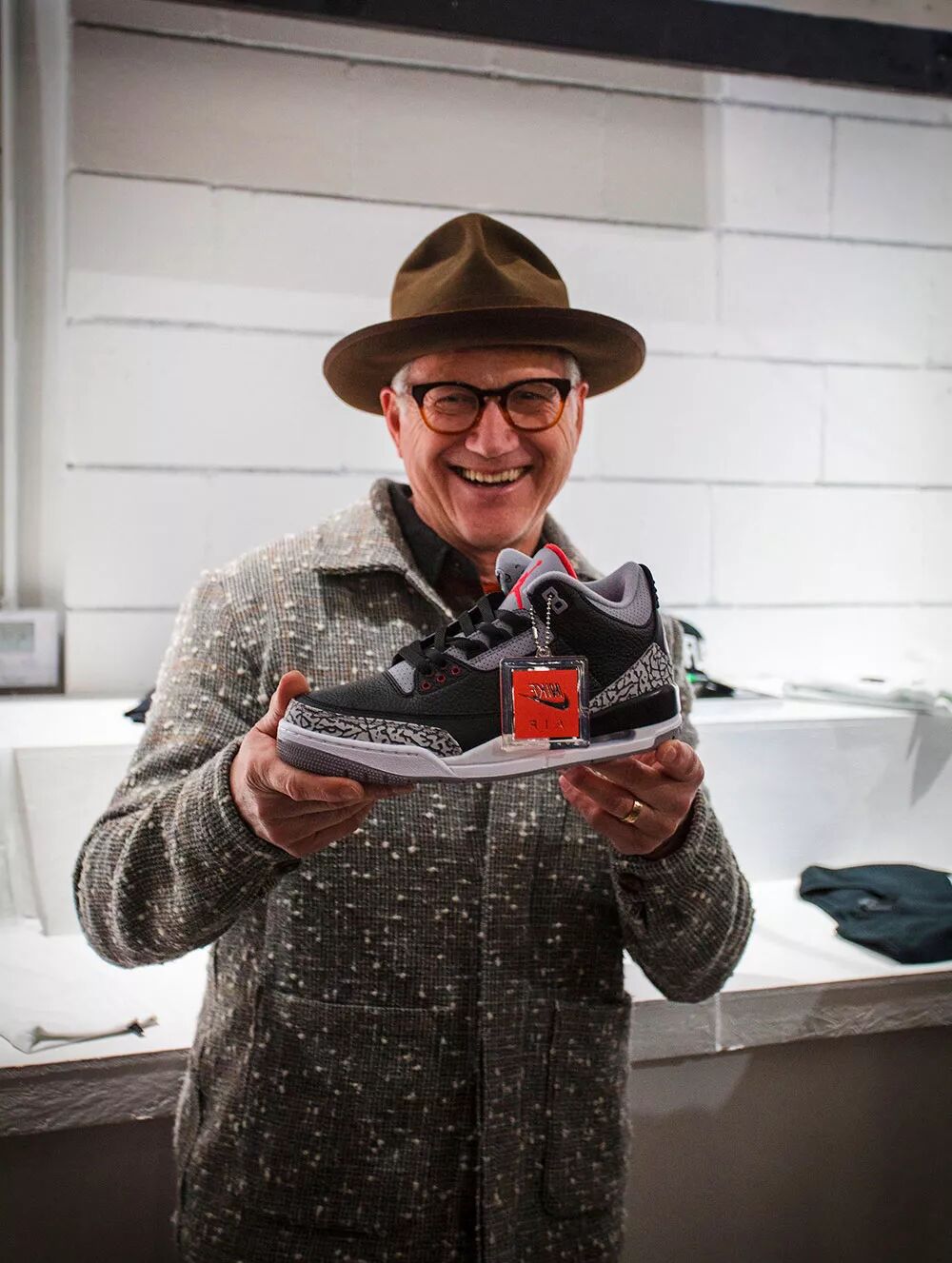 答:我在设计 AJ3 的时候和 Jordan 见了一面。在见了他之后我觉得他是一个非常强大的人,不管是从人的角度、从性格的角度还是从球员的角度。在见他之前,AJ3 的设计上有 Swoosh,在见他之后就被我拿掉了,因为我认为,Jordan 不需要 Swoosh,他很特别,即便当时 Nike 的很多人都反对。去掉 Swoosh 就像一种特殊的申明。
