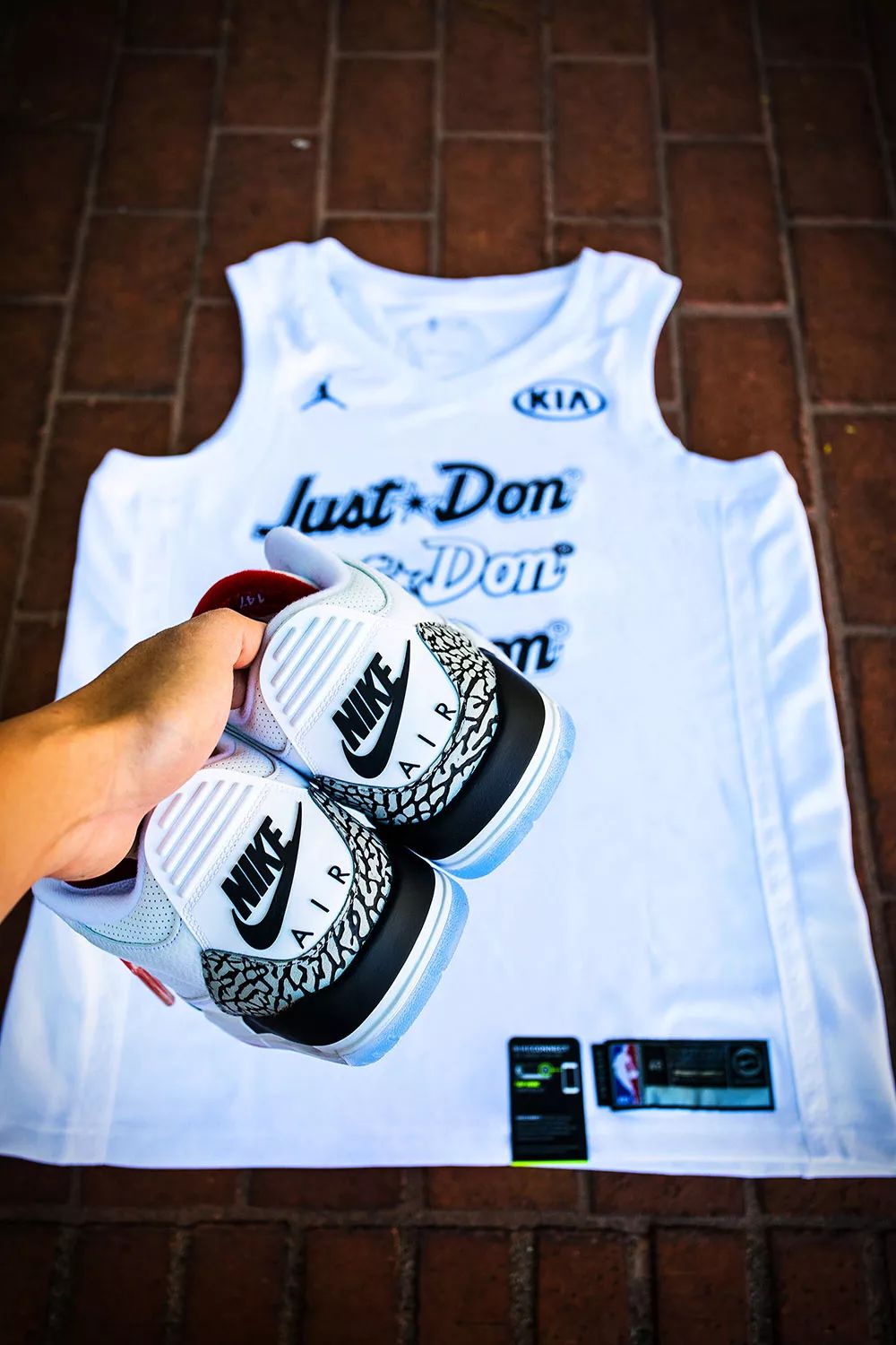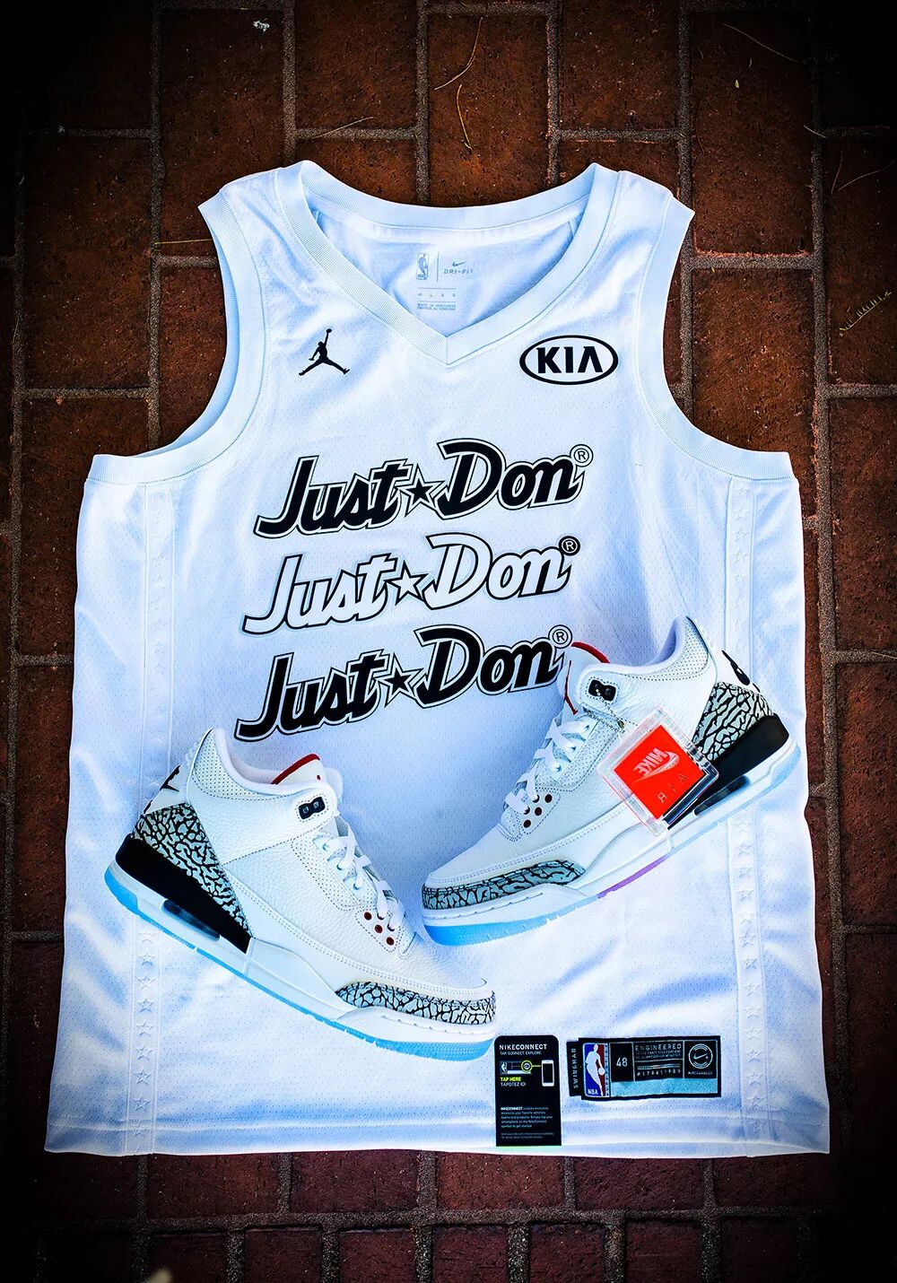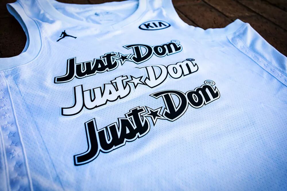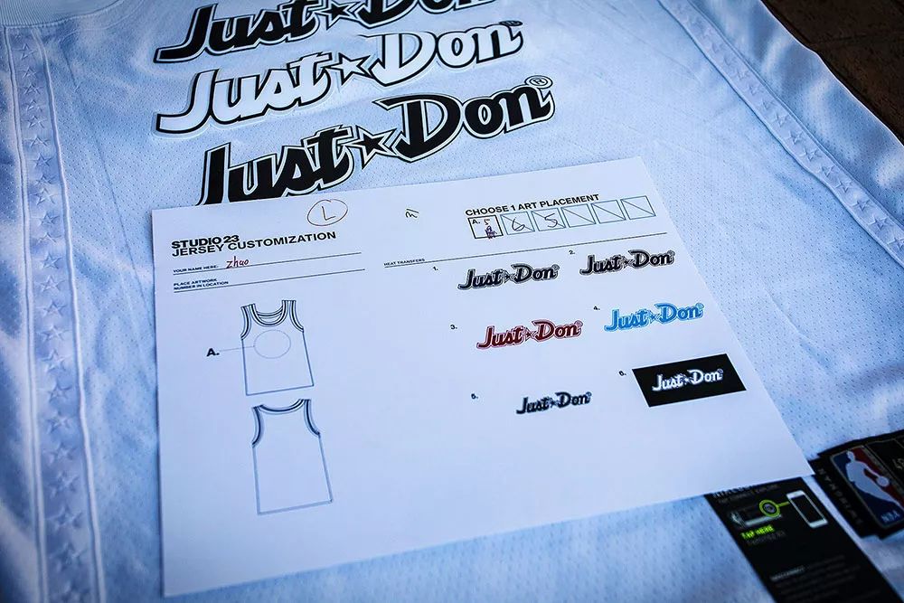 除此之外,现场还可以根据个人喜好现场定制球衣、T 恤、飞行夹克!为了搭配这双 Air Jordan 3 NRG “Free Throw Line”,小编还定制了一件印有 “Just Don” 的纯白全明星球衣!