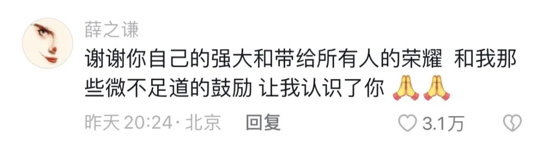 “谢谢你自己的强大和带给所有人的荣耀”