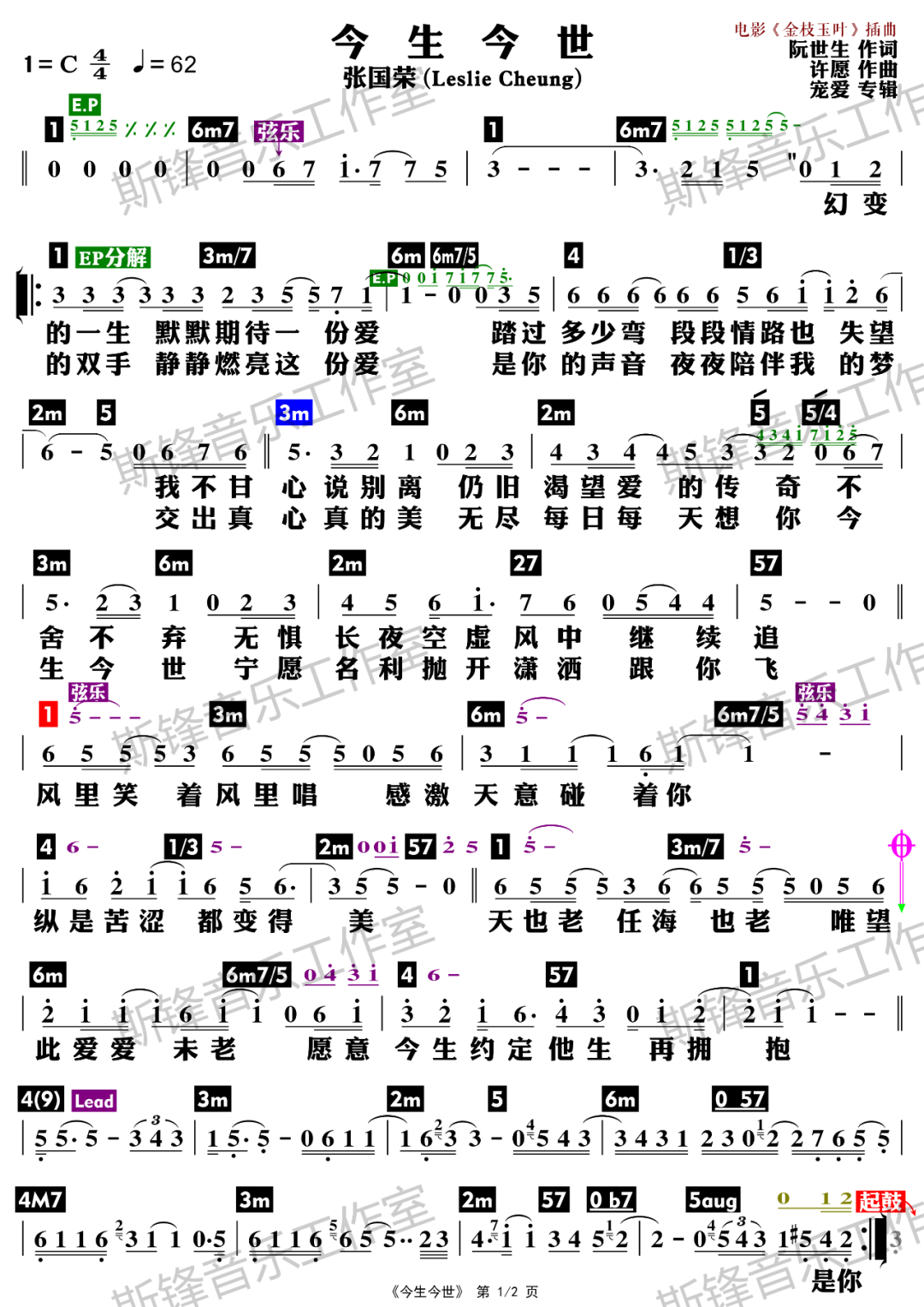 大家好,欢迎来到斯锋音乐工作室!今天,我们要一起学习和分享的是一首经典的歌曲——张国荣的《今生今世》。这首歌不仅在1994年的电影《金枝玉叶》中留下了深刻的印象,更是成为了许多人心中的永恒旋律。