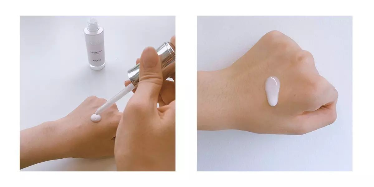 值得一提的是,新款小白瓶独特的旋转按压泵也是一大亮点,在盖上瓶盖的同时完成精华液的吸取,滴在手上即可使用,完全不会污染瓶内的其余产品。
