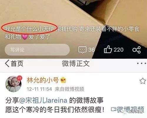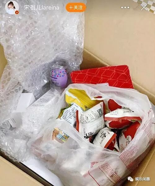 如果从最近的说起,那就是宋祖儿了。前不久,宋祖儿发了一条微博故事,配文:“我允是个什么天使,帮我代购,寄来还装着不胖的小零食和礼物,爱了爱了”。
