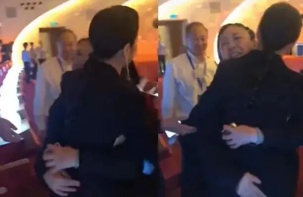 镜头一转周涛与自己的好友国家一级导演王芙英来了一个大大的拥抱,导演还说着:"这个舞台就是为你办的"。
