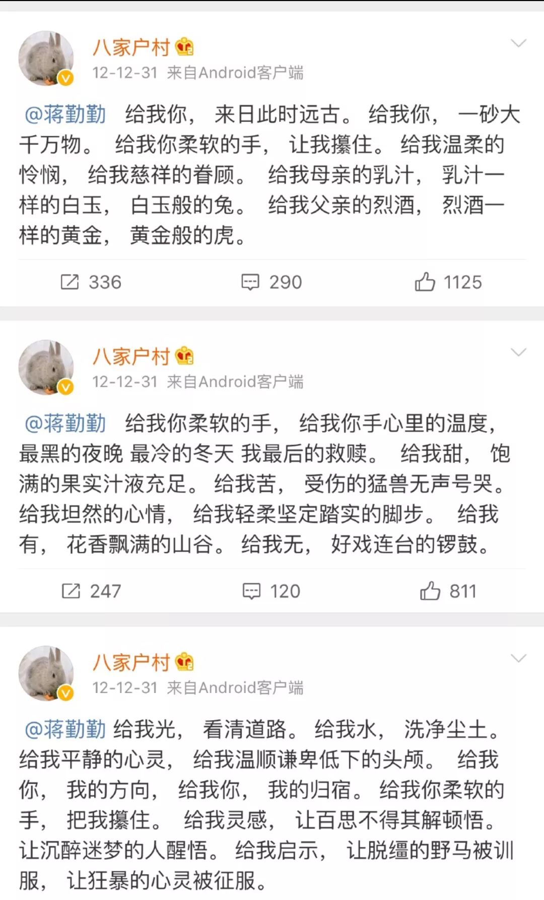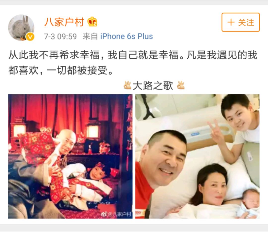 当二娃出生,他发了条微博:从此我不再希求幸福,我自己就是幸福,凡是遇到的我都喜欢,一切都被接受。