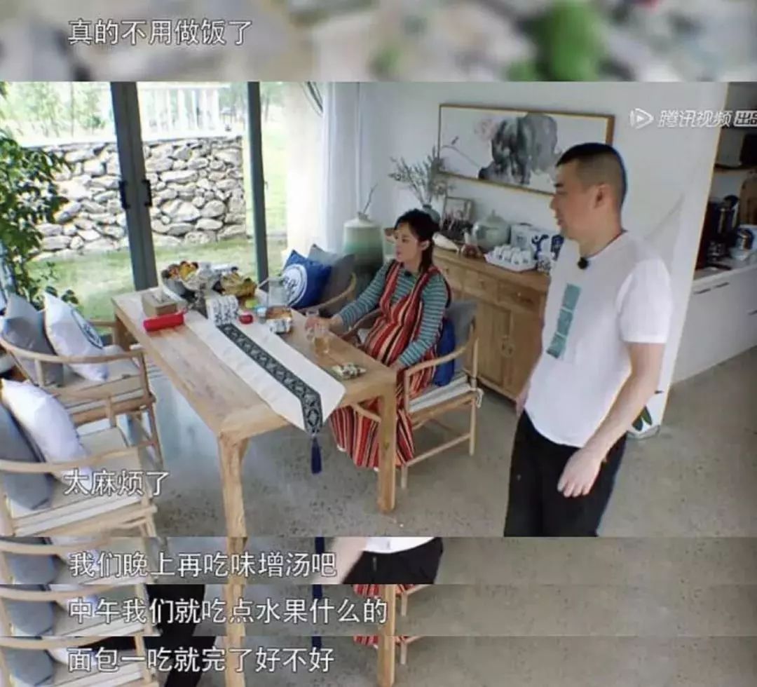 陈建斌的原则就是随便吃点面包水果垫补一下就行了,能省一顿是一顿,不用劳动就行了。
