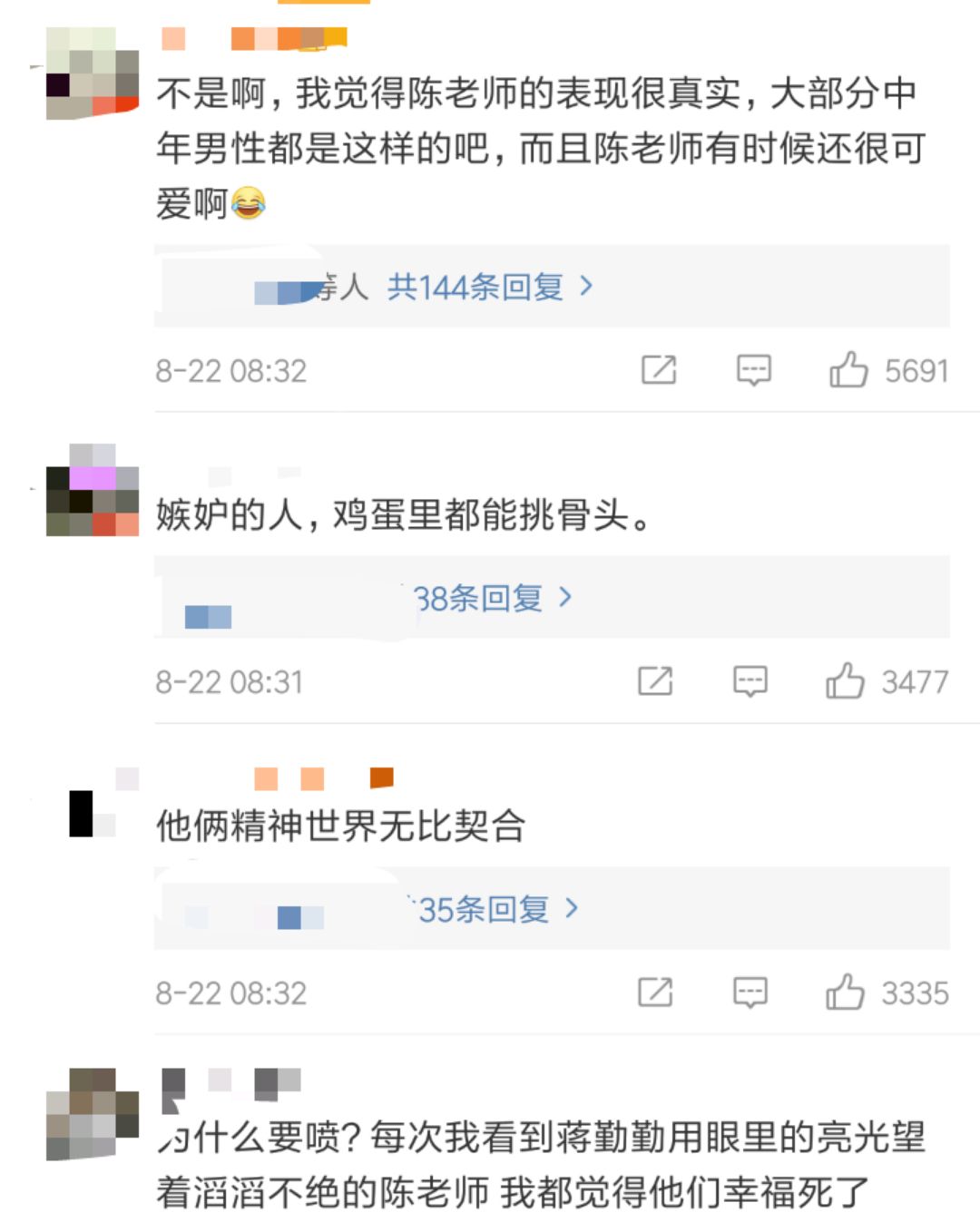 现在蒋勤勤为夫发声新闻的微博下热评是这样的。