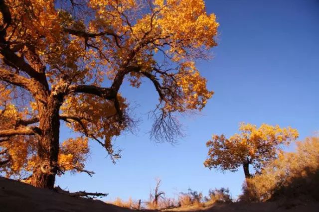 独有这无声无息的胡杨树于漫漫黄沙之中屹立不倒,成为后人追捧的最美风景。