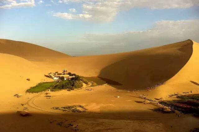 鸣沙山和月牙泉是大漠戈壁中一对孪生姐妹,“山以灵而故鸣,水以神而益秀”。游人无论从山顶鸟瞰,还是泉边畅游,都会心驰神往。在这里您可以自由选择骑骆驼、坐四驱车、或者直接步行上山。抢占一个绝佳的位置,带着你的小宝贝,在这座浪漫的沙山,张开双臂环拥着月牙泉,期待着朝阳第一缕阳光。